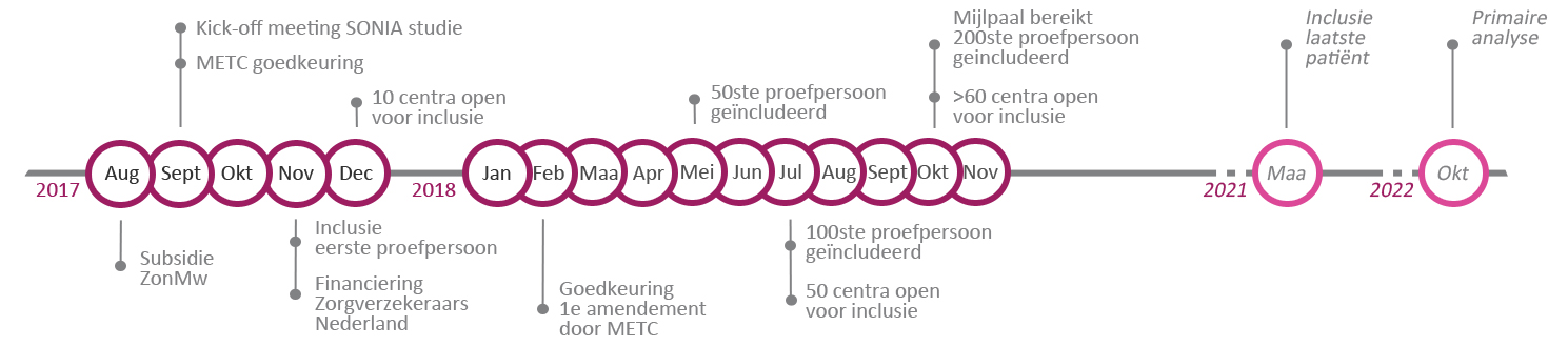200ste proefpersoon geïncludeerd 7 november 201820 november 2018 ~ redactiesonia In oktober is de 200ste proefpersoon geïncludeerd in de SONIA-studie. Hiermee is de vooraf gestelde mijlpaal bereikt. Er zijn meer dan 60 centra open voor inclusie. Gerelateerd